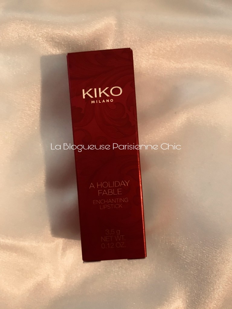 Ensuite, le rouge à lèvres ultra scintillant toujours de chez Kiko Milano « A holiday fable enchanting lipstick » teinte 01, il est à tomber avec ses paillettes.