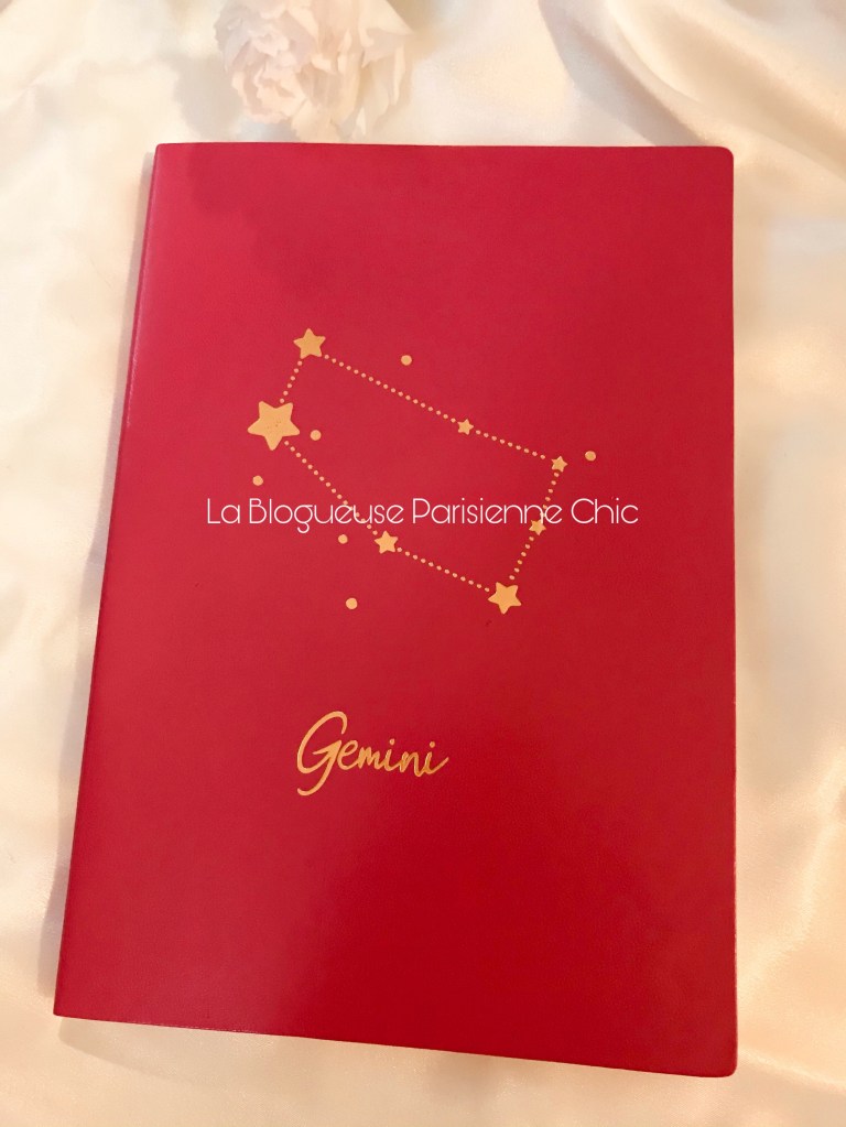 Un cahier signe astrologique avec une couverture rose girly et une trousse à maquillage Rose Gold.